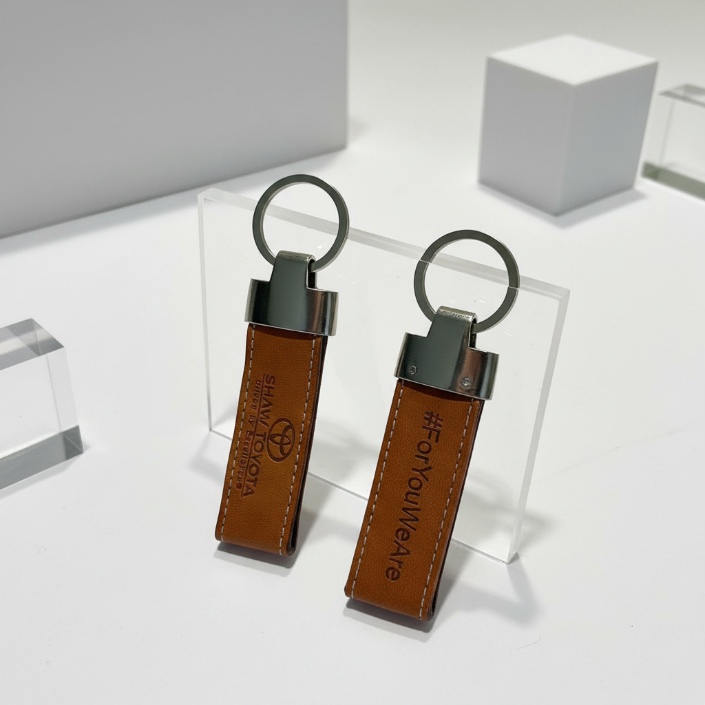 Natural Leather material chrome finish holder. Customized Branding. Premium Quality.